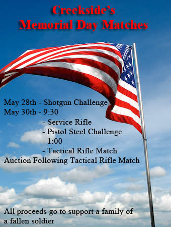 In that vein, on Saturday and Monday my friends at Creekside Firing Range near Cartersville, GA, will be hosting several gun matches, with the proceeds going to support a family of a fallen warrior.