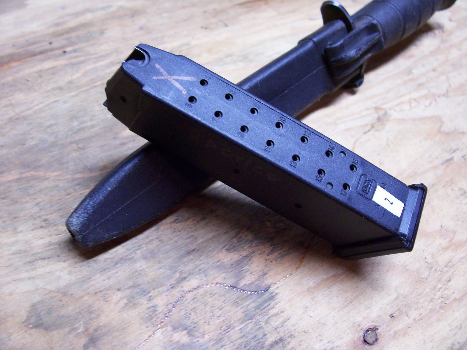 Then, last weekend at the Blogger Shoot, the same thing happened again. Since I numbered my magazines a couple of years ago, I knew this was the same mag that had given me problems before. Banging on the mag worked again, but I decided right then that Magazine Two was history.