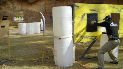 I shot Alpha / Charlie on the guillotine, not bad. But I missed one shot on a 25 yard target, and one shot on one of the swingers.