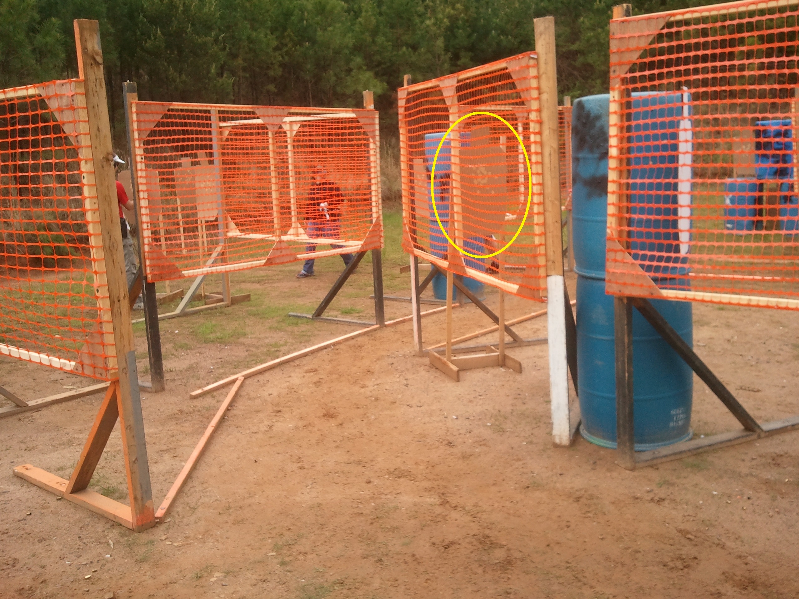 From this direction, it’s hard to see, but there is a paper target behind the barrier that is visible if we move to the left. When I first walked through this stage without reading the course description or looking at the diagram I thought that target was a no-shoot that was in place to keep me from shooting a close target to the right.
