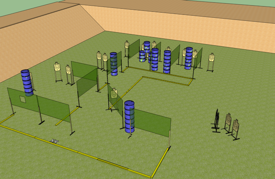 - From around the left barricade, shoot the four paper targets. Yes, it means I had to lean out to get the last target, but I can make that shot easily. Change mags.